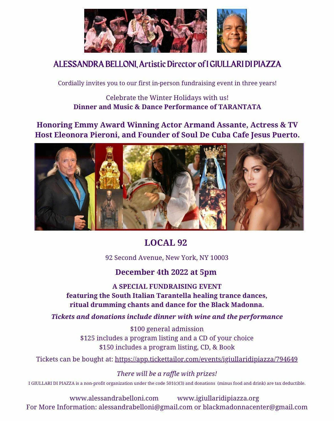 I GIULLARI DI PIAZZA Fundraising Benefit Honoring Legendary Actor Armand Assante, Italian Actress Eleonora Pieroni & Restauranteur Jesus Puerto / Local 92, NYC / 12.4.2022 / On Location Segment